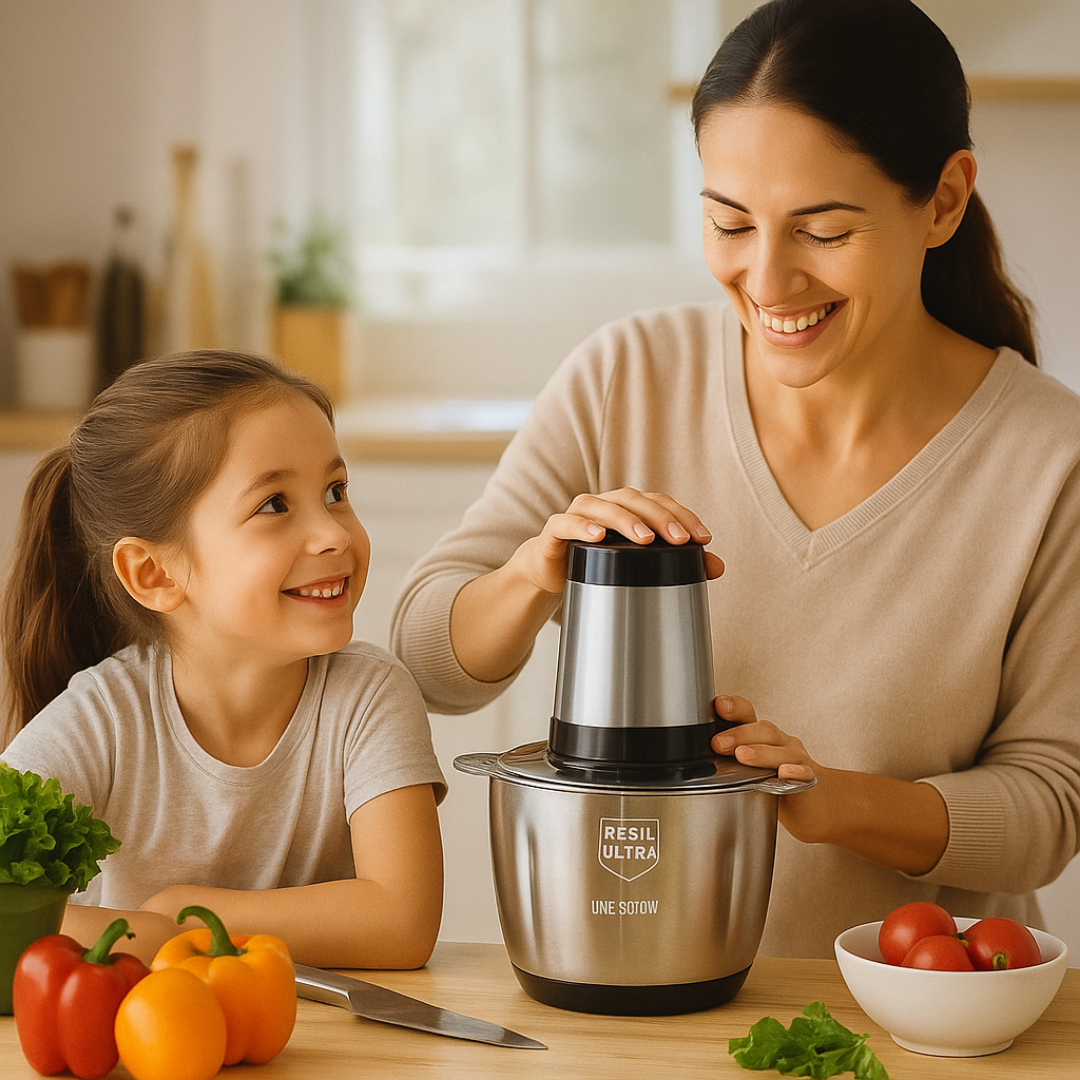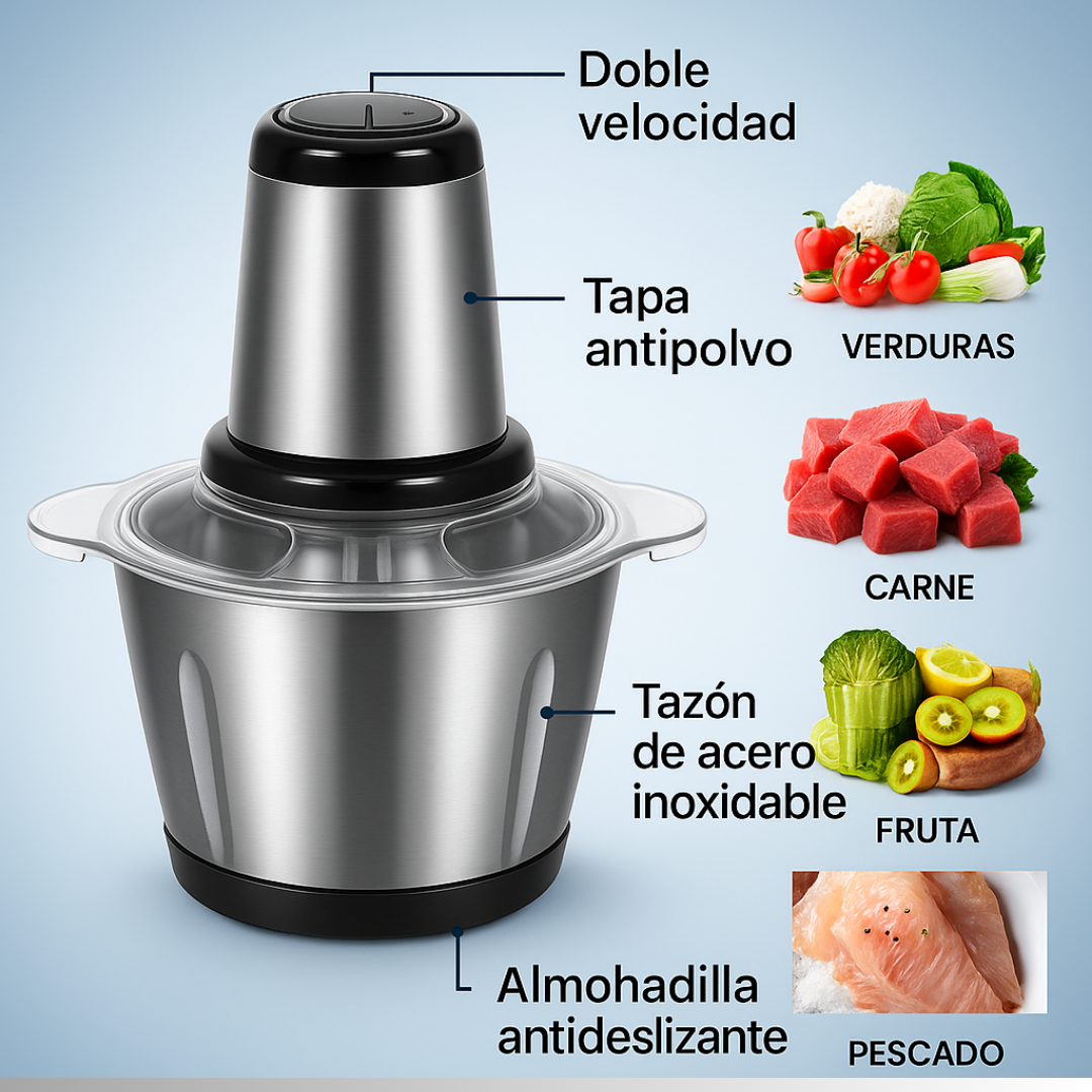 La MaxiPicadora™ hace que tu cocina sea más práctica y rápida. Con su motor potente y capacidad de 2L, prepara carnes, verduras, frutas y más en segundos. Ideal para ahorrar tiempo y disfrutar de comidas caseras sin esfuerzo.
